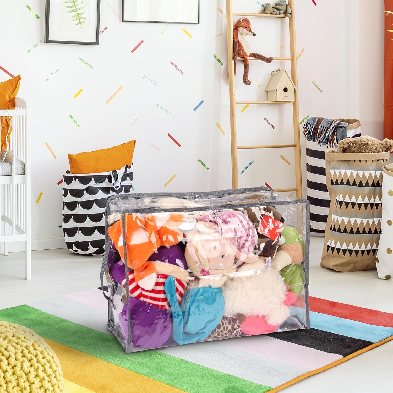 - Perfect Storage Bag: This set contains 4 gray 19.5x14x8 inch clear storage bags, each with a capacity of 35L (9.5 gallons), perfect for storing seasonal clothing conveniently in narrow closet or drawer spaces, on top of closet shelves or under the bed.