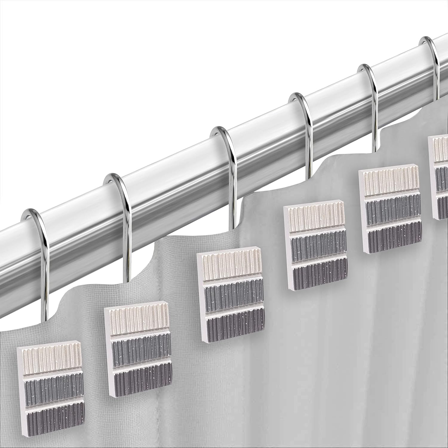 - IDEAL GIFT – The modern and contemporary design features shower curtain is 100% polyester material and 100% resin material on shower hooks, which will add a classy addition to any bathroom.
