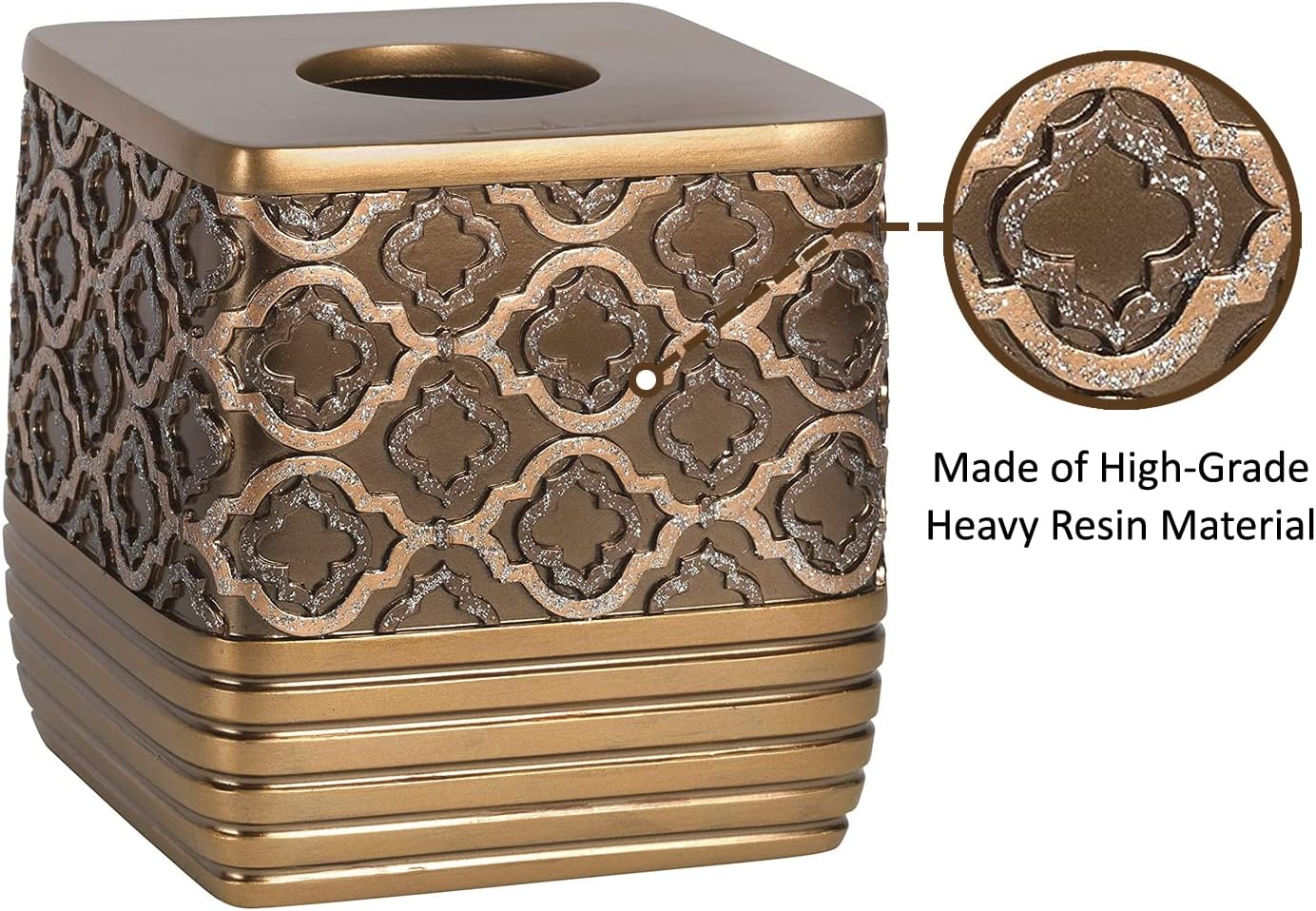 - DURABLE - These bath accessories are made out of heavy high-grade resin material to keep your bathroom looking great for years to come. Different from plastic and ceramic products that are easily broken. Easily wipe clean with a damp cloth or sponge. Adds an elegant and beautiful look to any bathroom.
