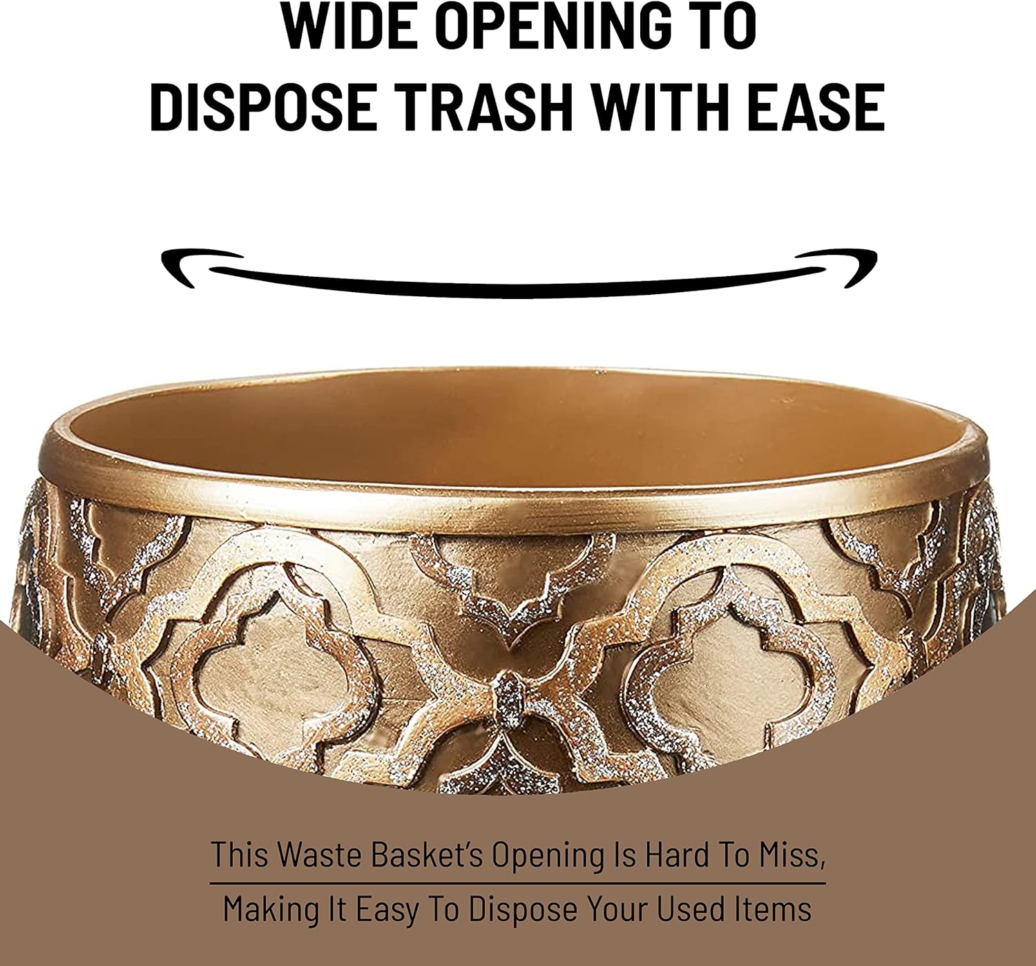 Zahari Home 2pc Spindle Modern Bath Accessories Set Waste Basket & Tissue Box Modern Classic Contemporary Decorative Beautiful Designs Bathroom Decor Set for Home Gold Complete Bathroom Sets