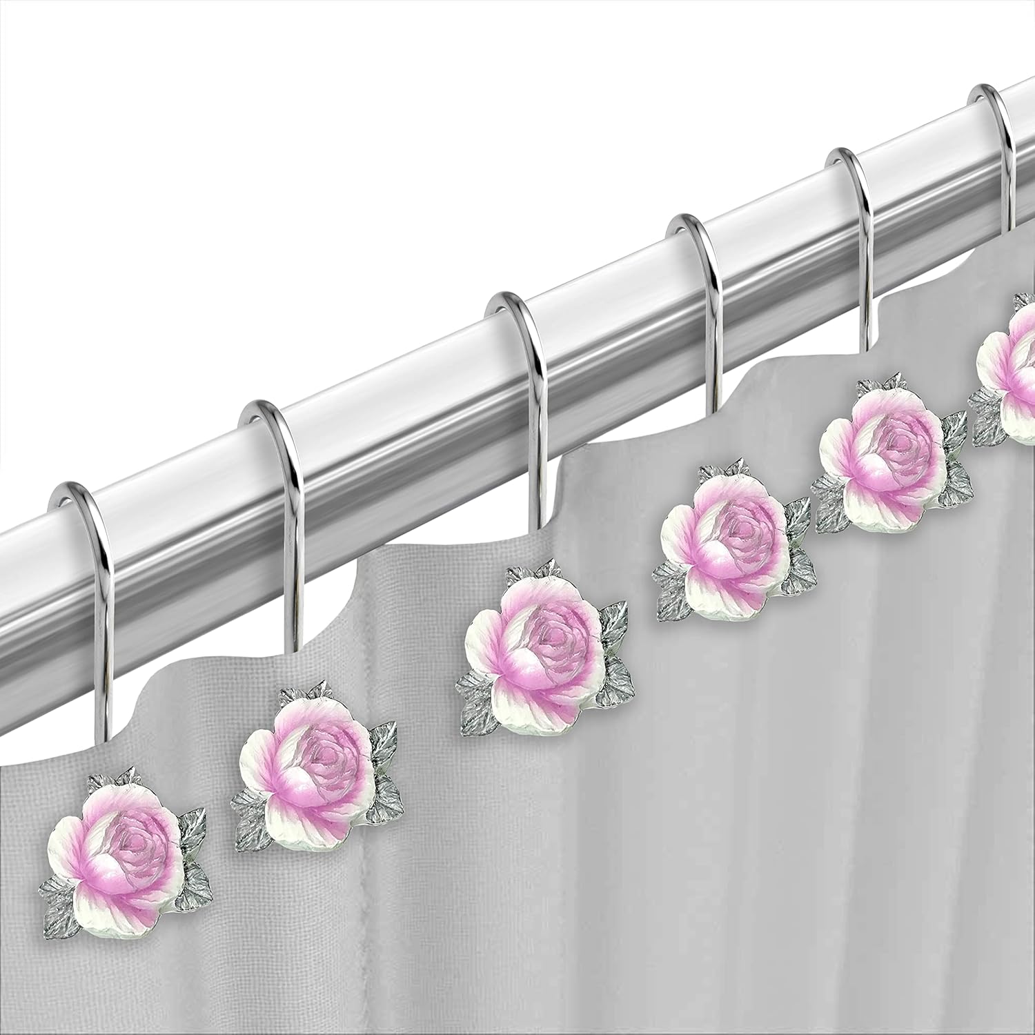 Zahari Home 13pc Michelle Bathroom Shower Curtain Sets Shower Curtain & 12 Shower Bathroom Hooks Modern Classic Luxury Contemporary Decor Floral Shower Curtain Stylish Bath Sets