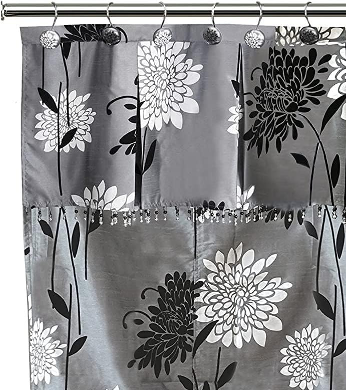 Zahari Home 13pc Erica Bathroom Fabric Shower Curtain Sets Bathroom Shower Curtain & 12 Shower Bathroom Hooks Modern Classic Luxury Contemporary Decor Grey Shower Curtain Stylish Bath Sets