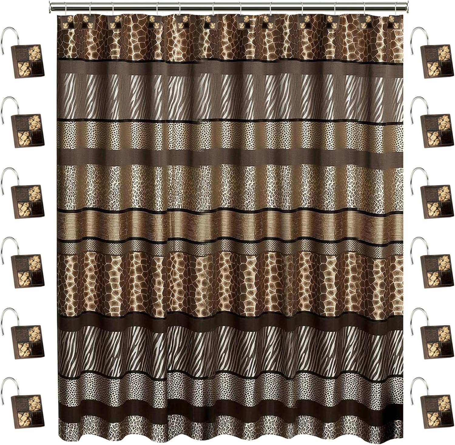 Zahari Home 13pc Safari Stripes Bathroom Shower Curtain Set Animal Print Shower Curtain & 12 Shower Curtain Hooks Luxury Southwest Shower Curtain Unique Design Rustic Shower Curtain Set