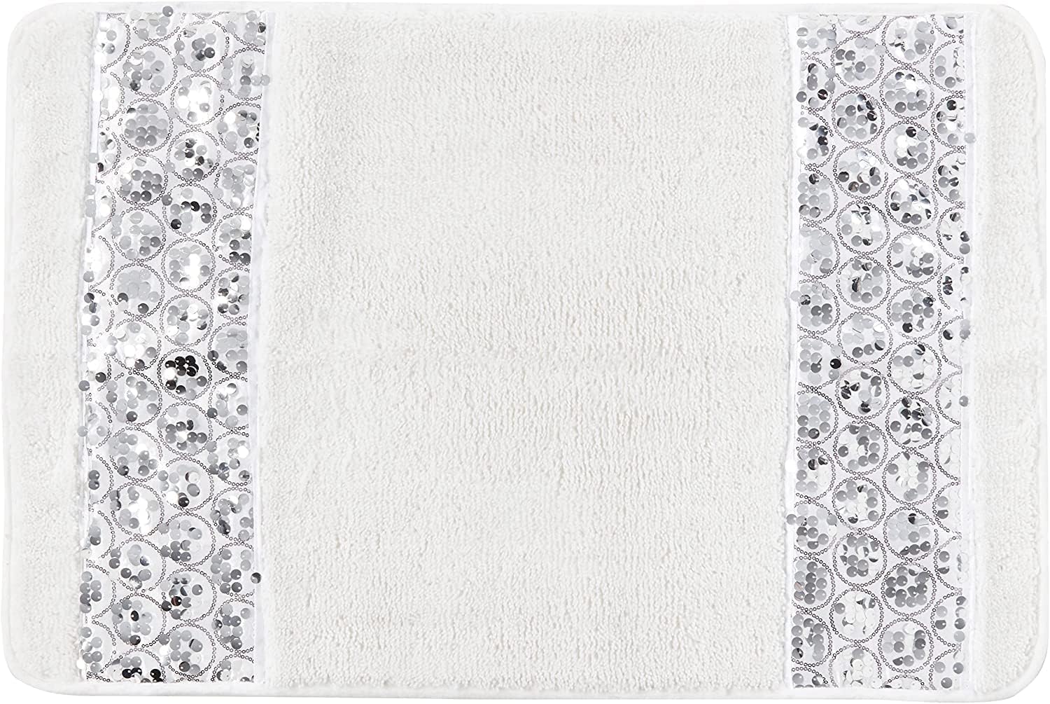 Zahari Home Sinatra Modern Bathroom Rug Classic Luxury Bath Rug Contemporary Decor Stylish Bath Mat for Shower Unique Design White Bathroom Rug Bath Shower Tub Decor Bling