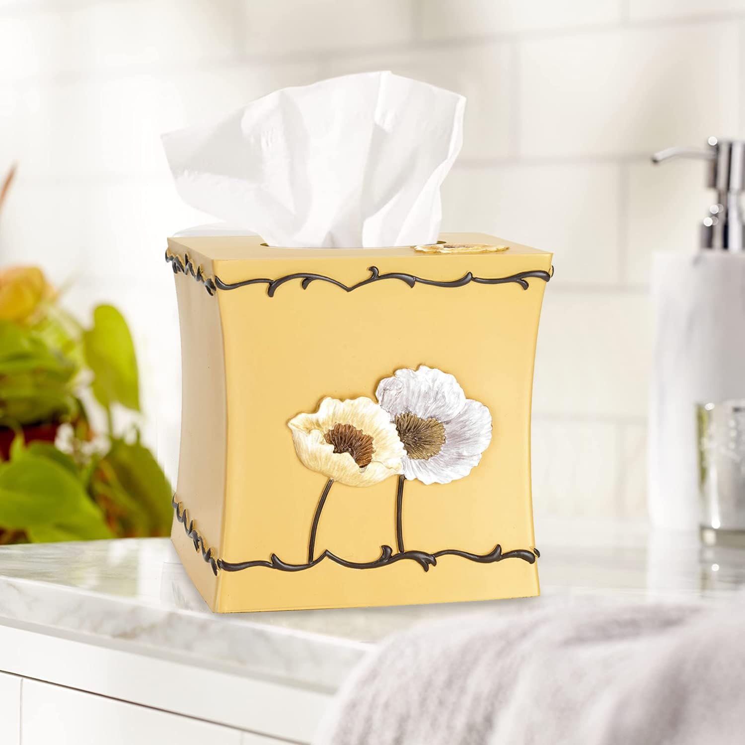 Zahari Home 2pc Poppy Fields Modern Bath Accessories Set Waste Basket & Tissue Box Modern Classic Contemporary Decorative Beautiful Designs Bathroom Decor Set for Home Luxury Yellow Bath Set
