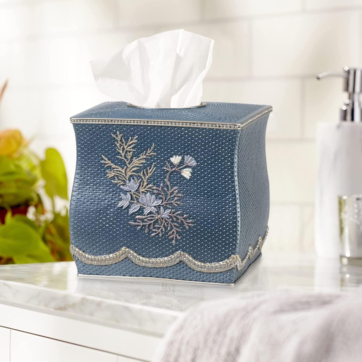 Zahari Home 2pc Capri Bathroom Decor Set Waste Basket for Bathroom & Tissue Cover Modern Classic Decor Stylish Unique Design Beautiful Royal Blue Bathroom Accessories Set