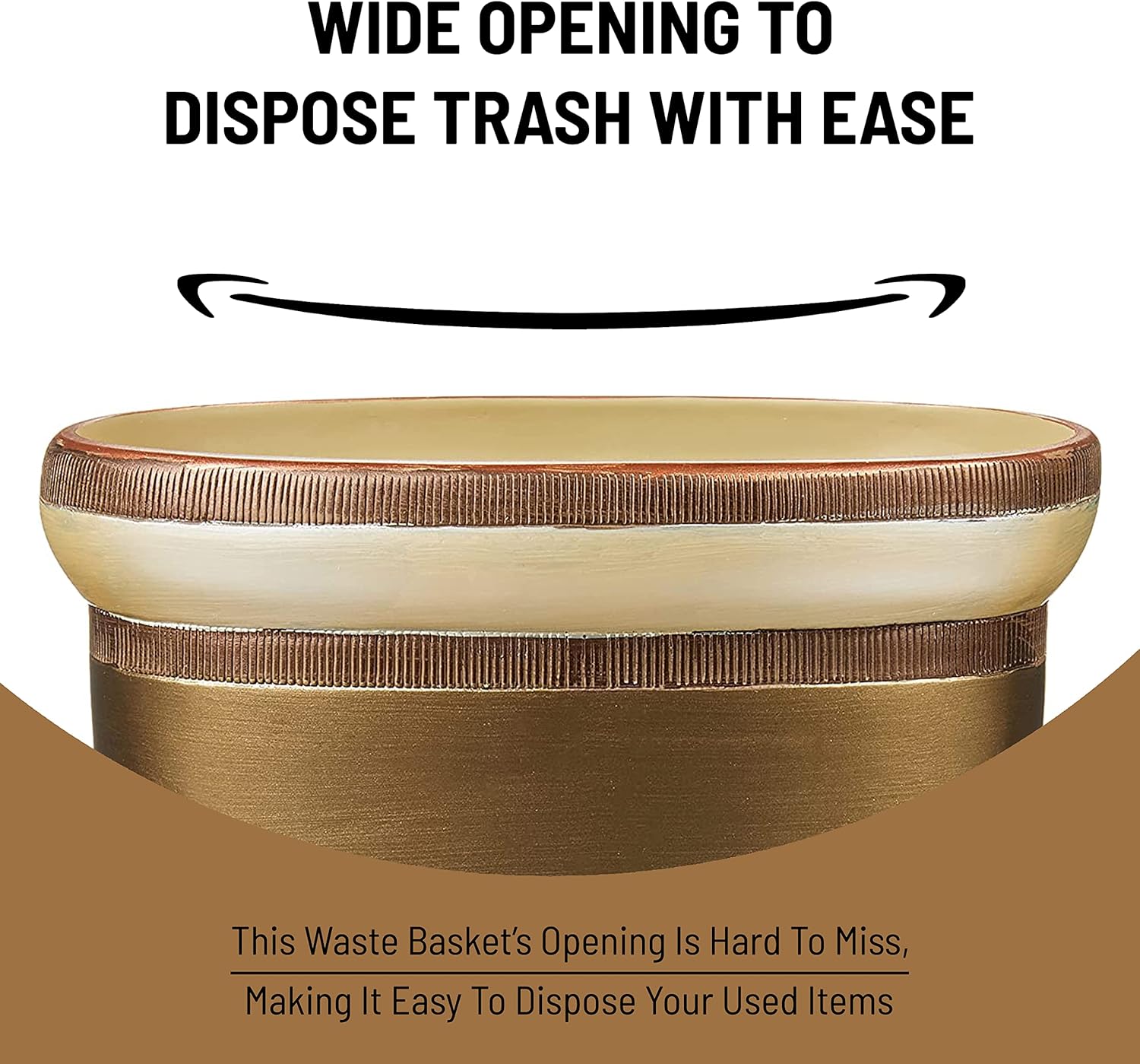 - VALUE SET- Uniquely Designed 2 Piece Set includes the following: Waste Basket and Tissue Box. Get all your bathroom needs with this bath accessories set. It is a one-stop-shop that will complete all your bathroom decor needs.