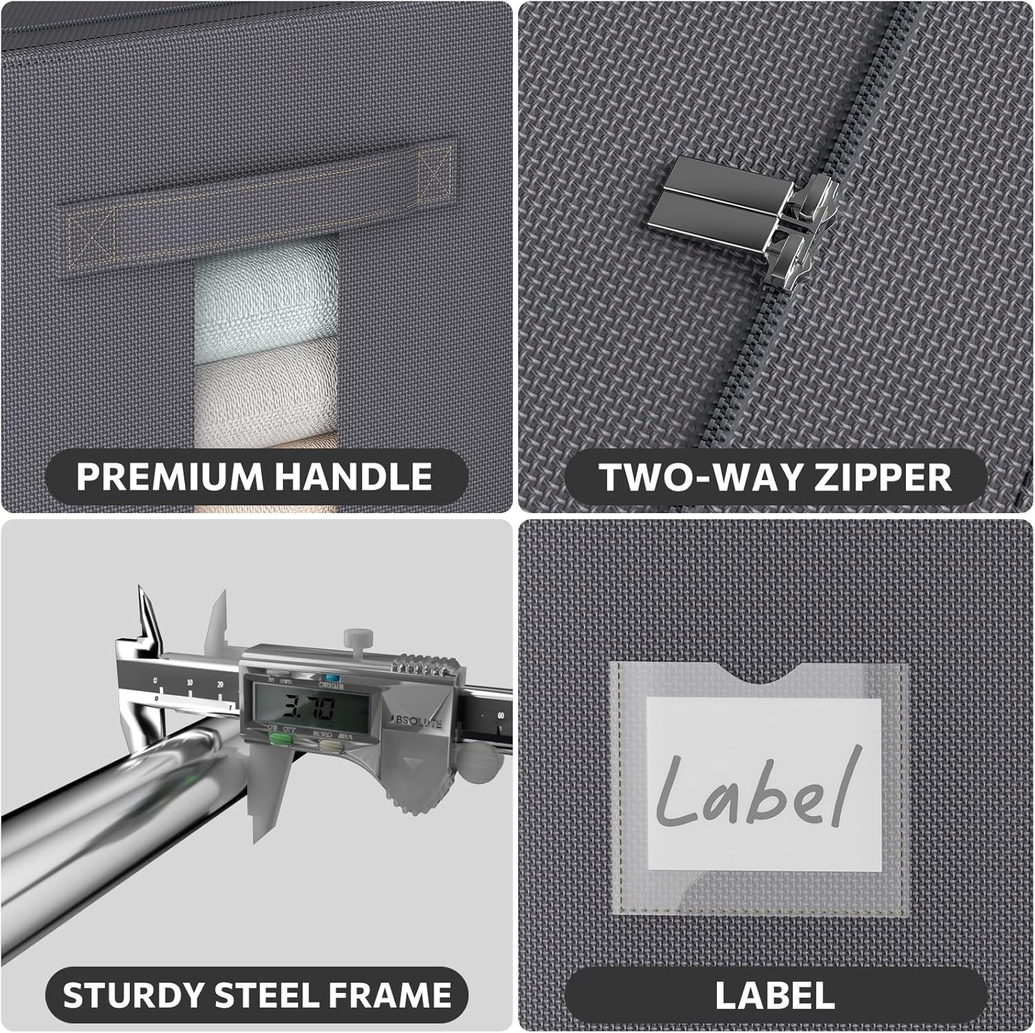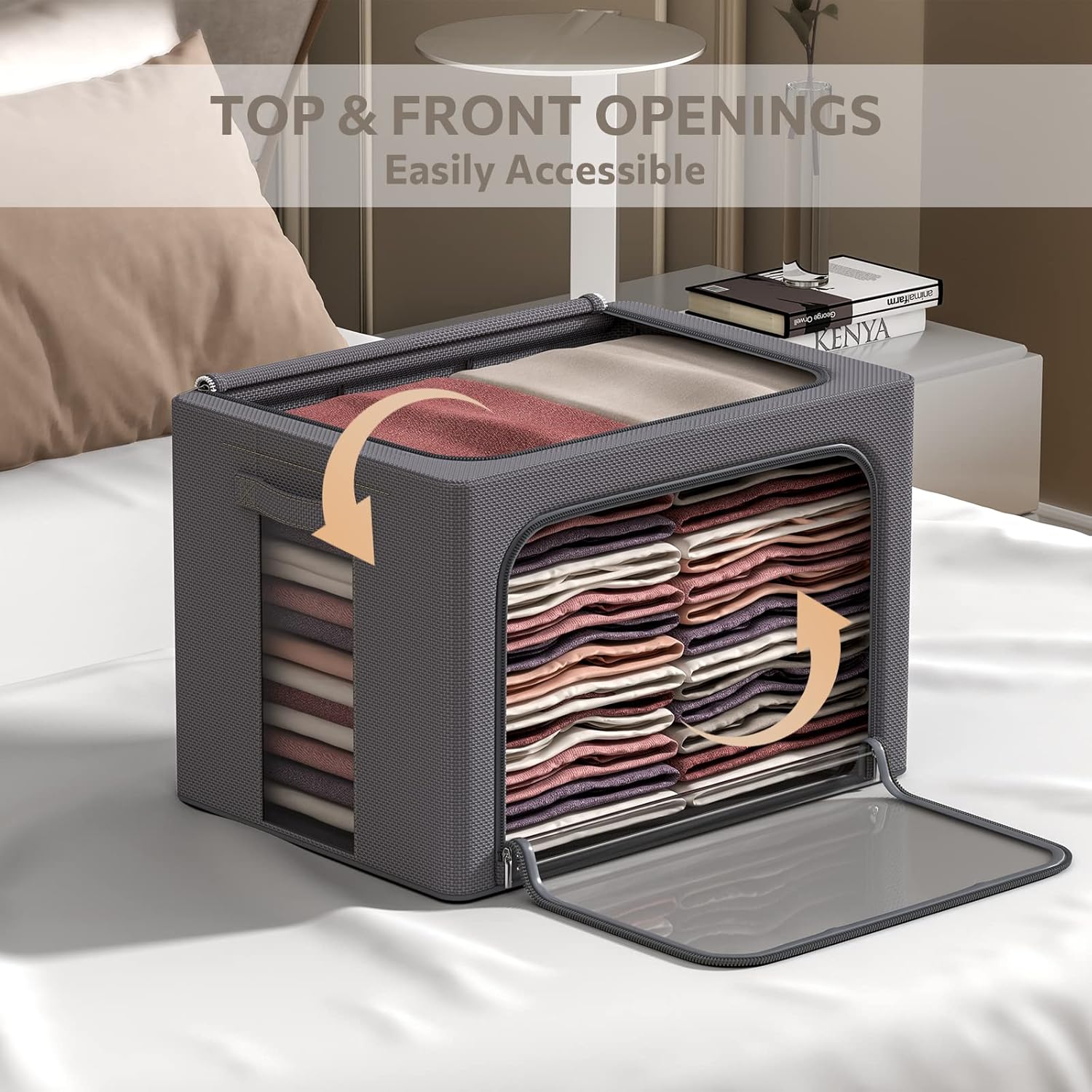 3Pack Stackable Clothes Storage Bins - Oxford Frame Storage Box Foldable Clothing Storage Container Organizer Set with Clear Window & Carry Handles Large Capacity (Dark Gray, Large-66L)