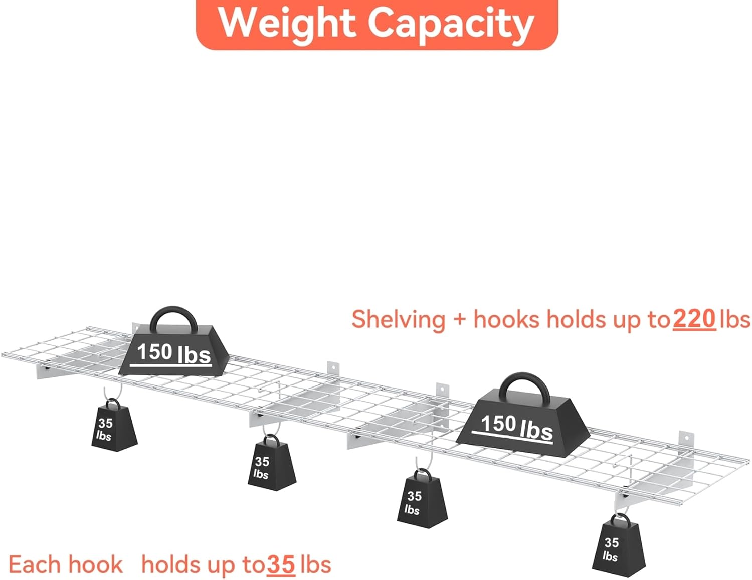 - Extra Hooks Provided: Package comes with extra 4 hooks, you can hang your helmets and backpack and other stuff for easy access. This is a nice extra and really handy for hanging stuff (up to 35 lbs/hook)