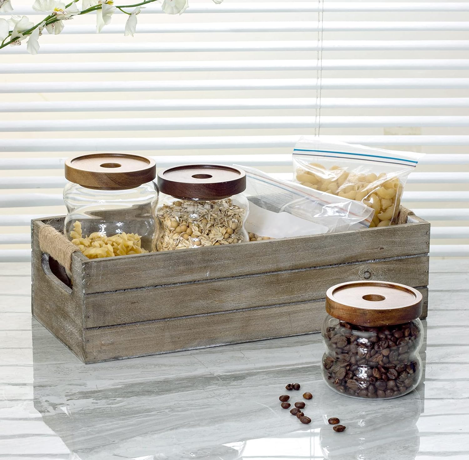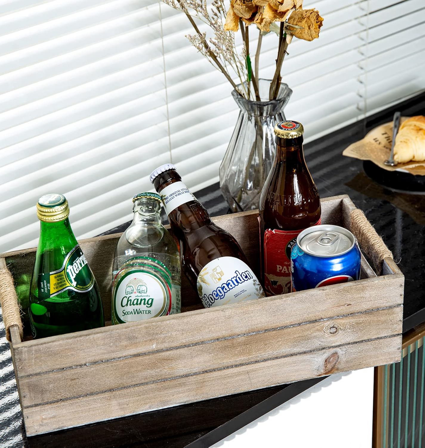 - UNIQUE DESIGN – The rectangular wooden container has natural wood grain and knots on the surface, so each box is unique. The farmhouse jute rope cutout handles make the box a vintage look that allow you to carry it around with ease.
