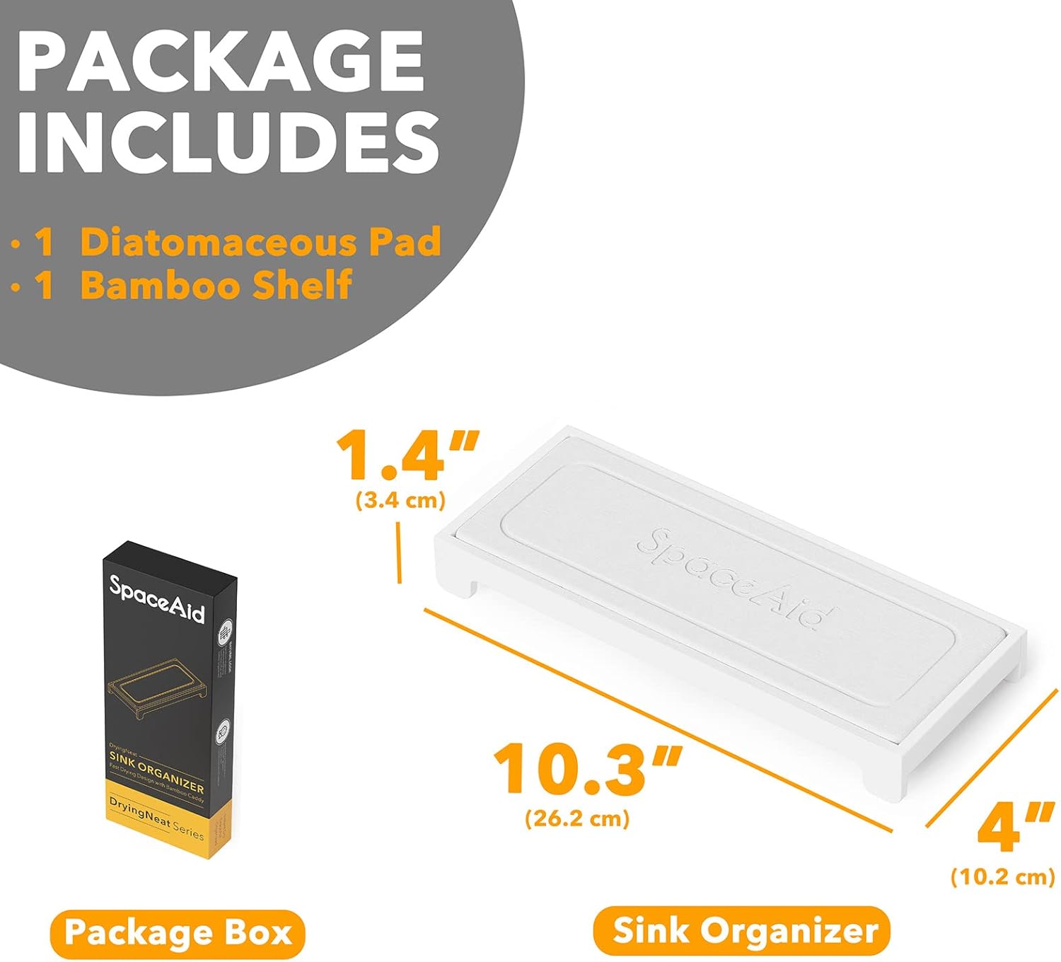 SpaceAid DryingNeat Sink Organizer, Instant Dry Sink Caddy Organizers, Kitchen Sponge Soap Holder Dispenser, Countertop Fast Drying Counter Tray Rack (Bamboo Rack, White)