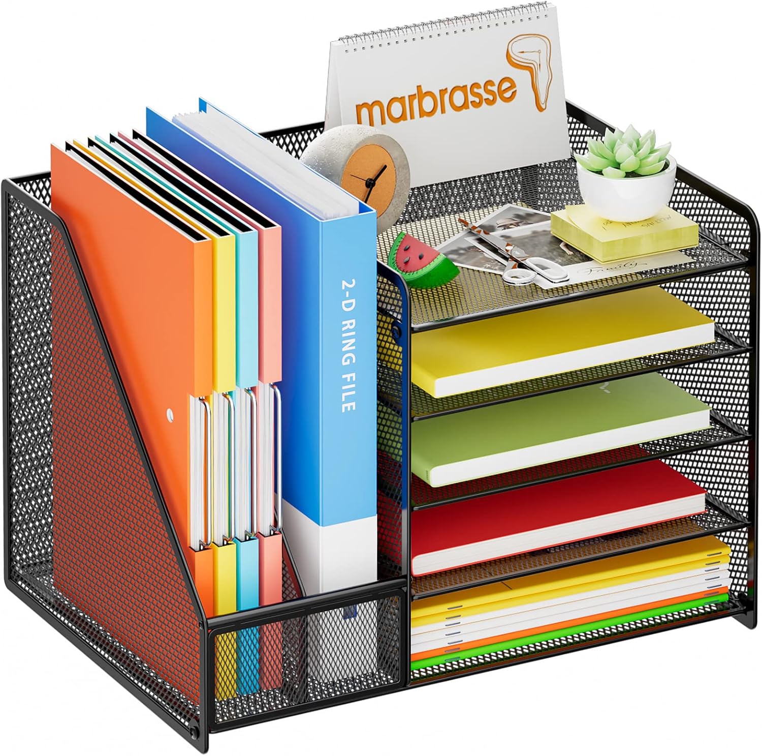 - 【Ideal Desk Organizer】Marbrasse newly releases the desk file organizer! The humanized office organization owns 5 sliding trays + 2 Magazine Holders which tidies up your desktop and is convenient to your office! All the designs specialized to comply with your office, such a perfect supplies desk organizer must be the best choice for your office accessories