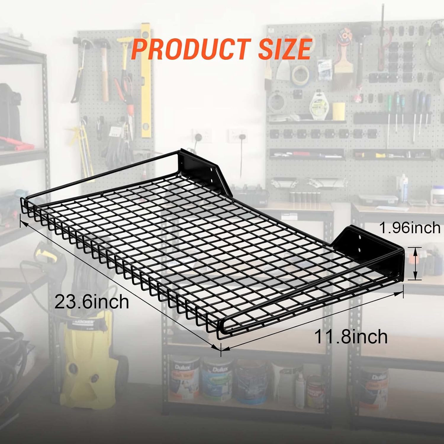 Wallmaster Garage Wall Shelf 2 Pack 23.6"x11.8" Wall Mount Heavy Duty Metal Shelves Mesh Storage Rack for Garage, Office, Basement and Kithcen, max Load 65 lbs (Black)