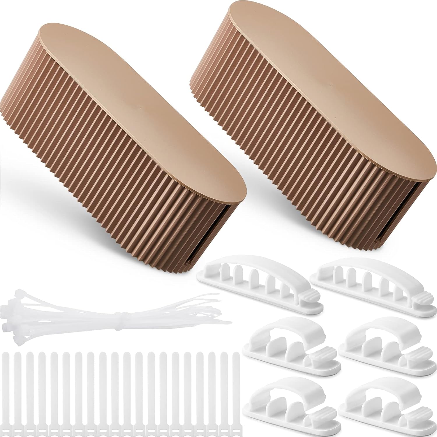 Marsui 2 Pcs Cable Management Box Cord Hider Organizer with 46 Pcs Cable Management Kit Wire Box for Power Strips Surge Protectors Desk TV Computer Wires Home Office(Light Coffee)