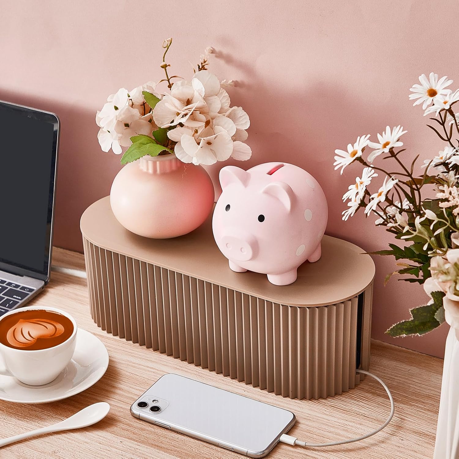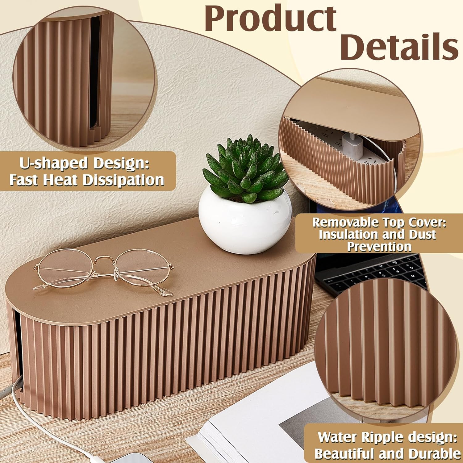 - Simple to Use: the wire organizer box is very easy to assemble, just place the power strips and cables (not included) inside and close the lid; Regain wasted space, embellish your desktop or bedroom, wires are organized easily by using this light coffee wire organizer box