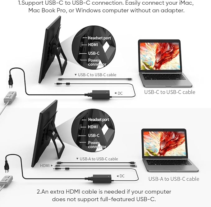- Cable in, Creativity out: Connect to your PC/Mac easily with a USB-C to USB-C cable. The Artist 24 (FHD) is compatible with Windows 7 (or later), macOS X 10.10 (or later), Chrome OS 88 (or later), and Linux (detailed versions). It also works seamlessly with popular digital art software, such as Photoshop, Illustrator, SAI, CDR, GIMP, Krita, MediBang, FireAlpaca, and Blender 3D