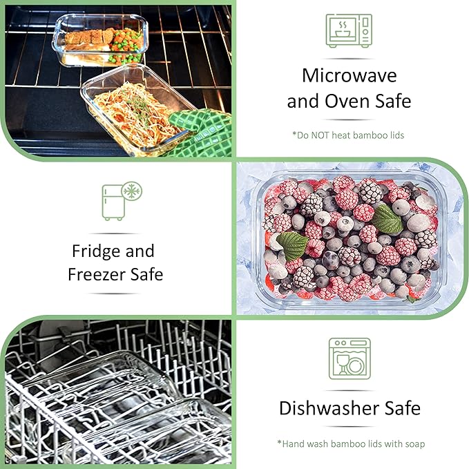 - EAT PLASTIC FREE: Enjoy the safety of storing and heating your meals in our sustainable glass containers with bamboo lids; our plastic-free, wooden lid storage containers naturally complement your pantry, kitchen cabinets, and meal preparation needs