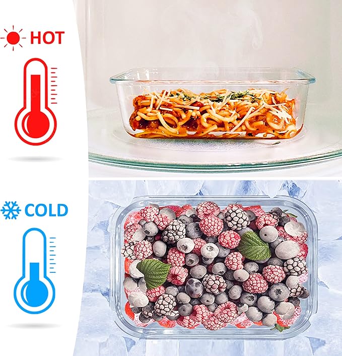 - ALL PURPOSE BOROSILICATE GLASS: Our shatterproof glasses are biodegradable and dishwasher, freezer, microwave, and oven SAFE to 750 °F; you’ll get a set of three 1040 ml glass food containers with lids and a BONUS Elastic Cutlery Band to hold silverware