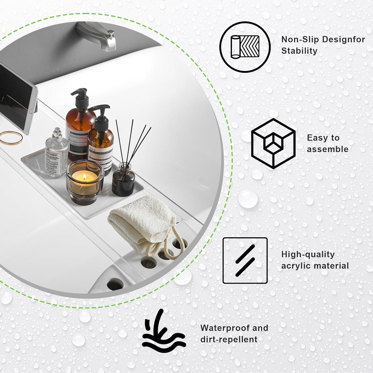 - COST-EFFECTIVE: Made of high-quality acrylic, this bathtub tray is waterproof has a long service life,
