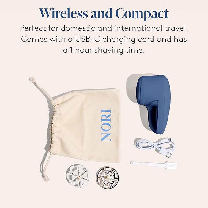 Nori Trim Fabric Shaver - Lint Remover for Clothes & Furniture Couch Pilling - Sweater Pill Remover - Clothes Shaver with 6 Precision Blades - Wireless and Rechargeable - Navy