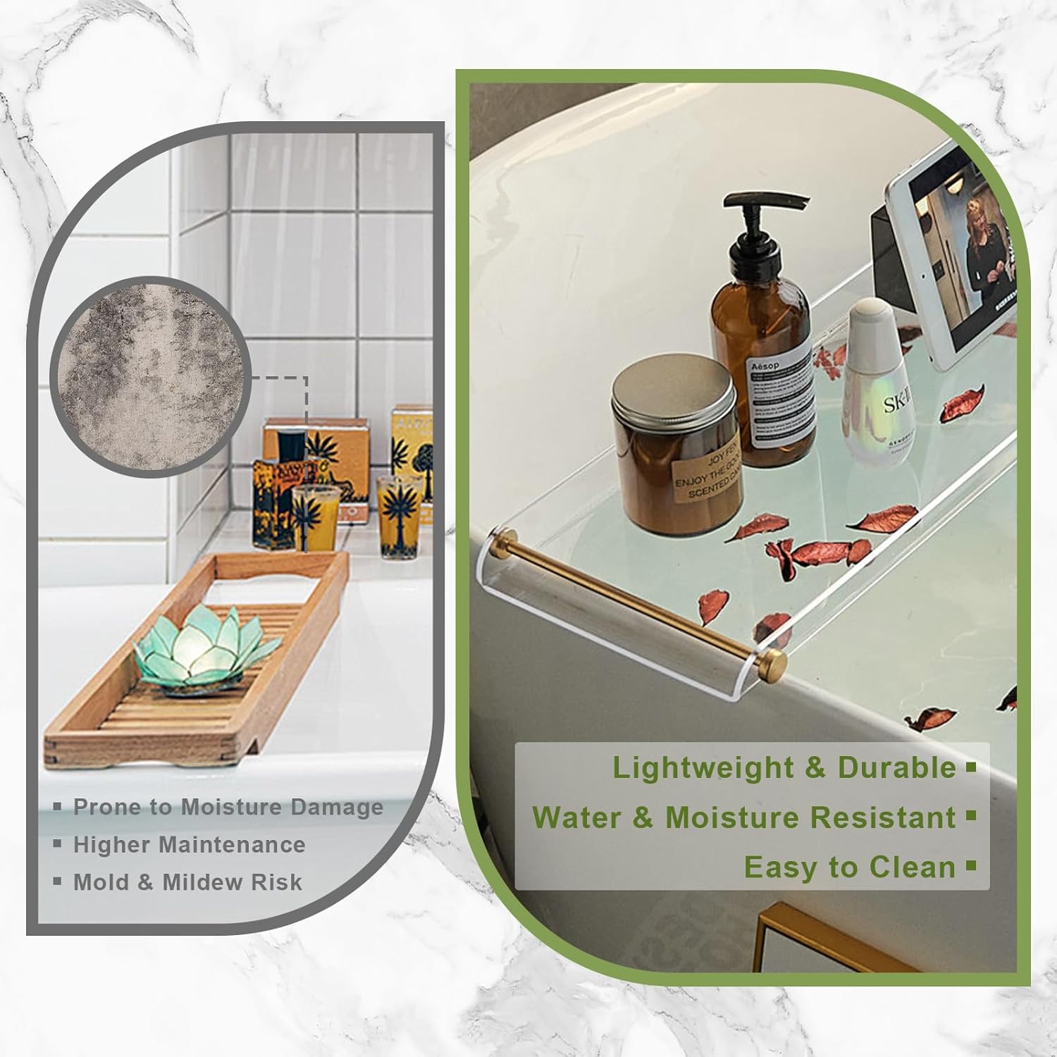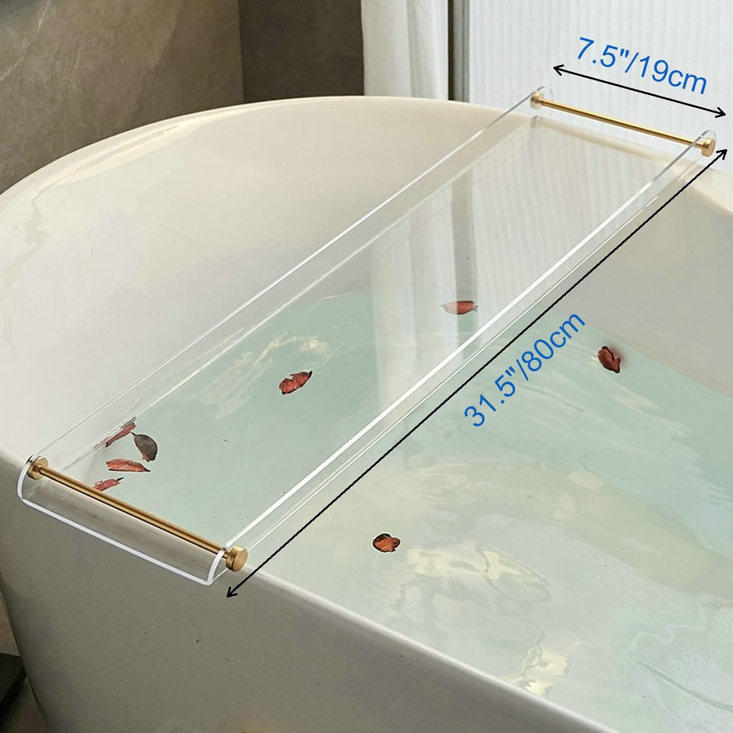 Acrylic Bathtub Tray Caddy, Clear Bath Shelf Tub Rack with Golden Handle, Luxury Bathroom Organizer Tablet Holder SHUNLI