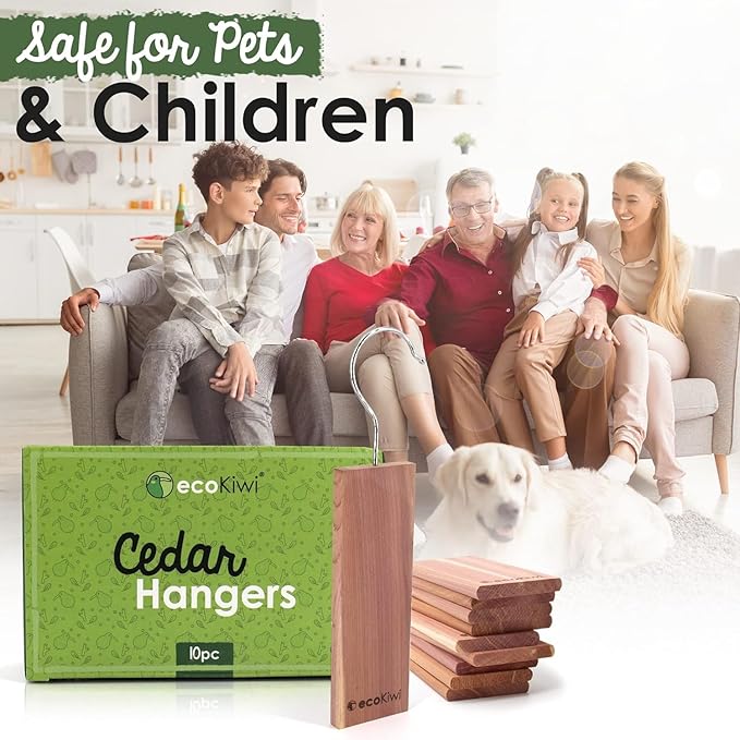 - PROTECT OUR PRECIOUS PLANET - At ecoKiwi, we were tired of seeing excess waste and unsustainable products, so we created our cedar planks for closets to be long-lasting and sustainably sourced. Our cedar closet hangers eliminate the need for any chemicals or plastics to be used. Just pure, sustainable and effective eastern red cedar chips for storage. Join the eco friendly revolution with our cedar blocks for closet products.