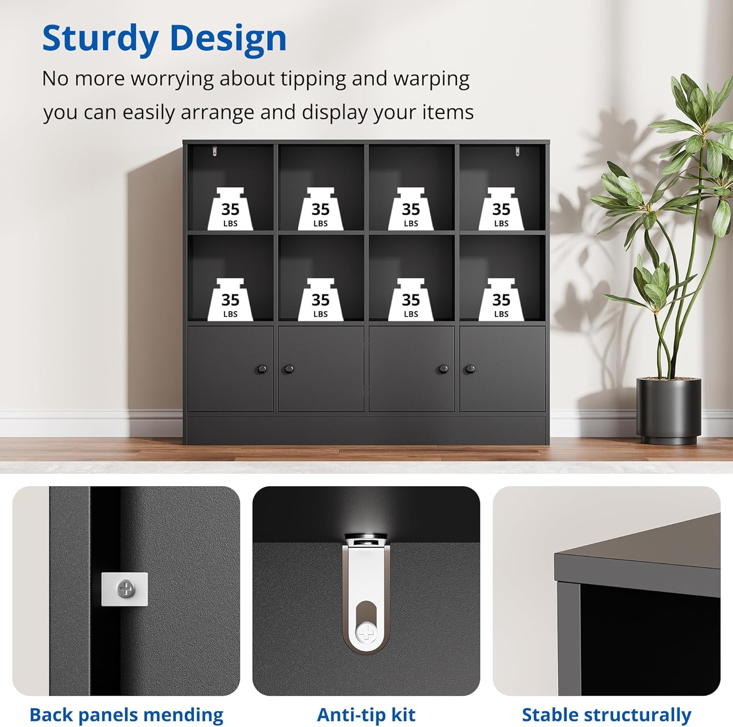 - Stable Construction: Equipped with an anti-tipping design and high-quality wood panels, which makes the bookcase more stable and safe. Exquisite sealing process gives the storage organizer a waterproof surface and smooth texture while making it durable