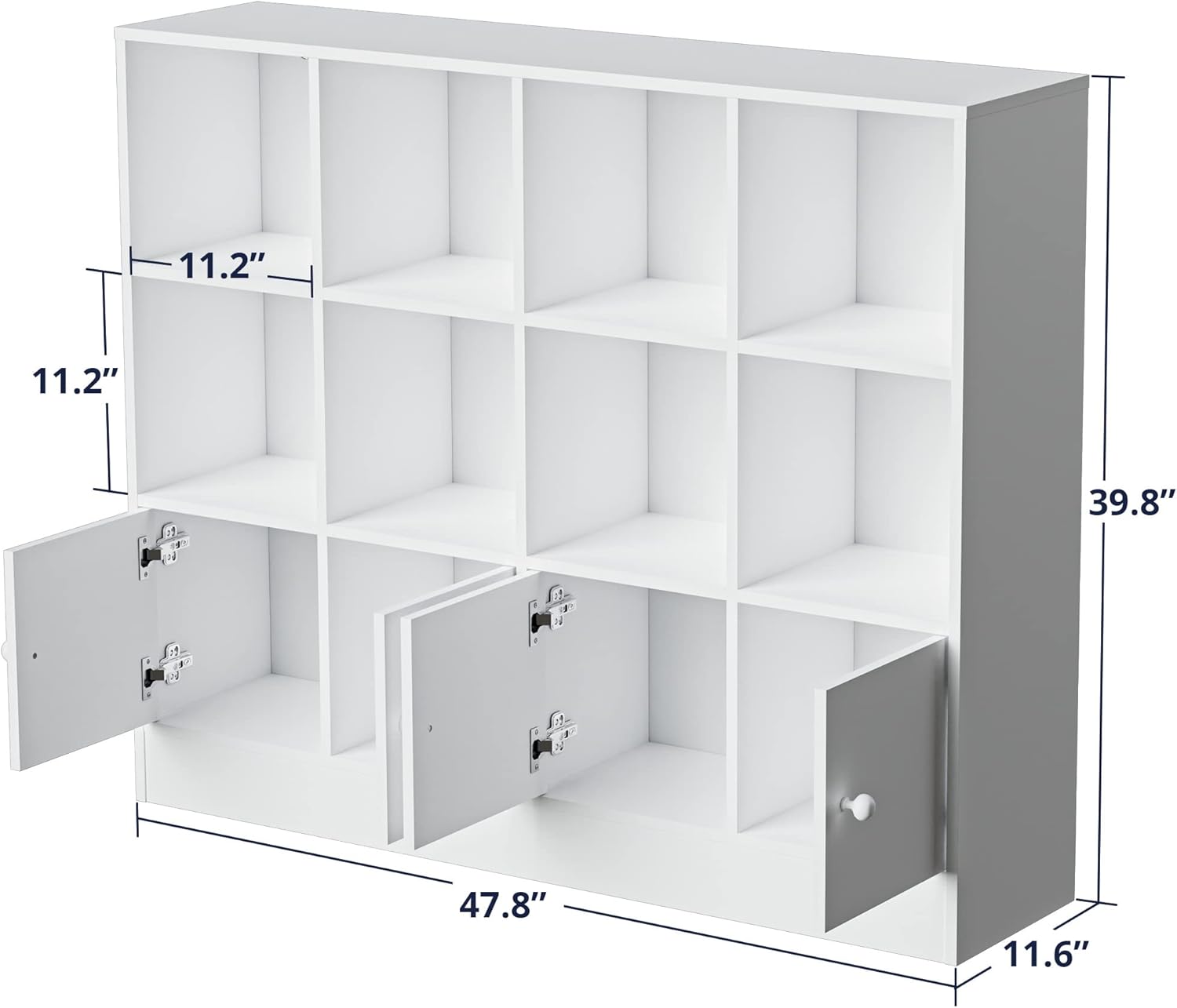 Cozy Castle White Wood Bookcase,12 Cube Storage Organizer Bookshelf with 4 Doors,3 Tier Storage Cabinet with Adjustable Shelves for Bedroom, Living Room, Office