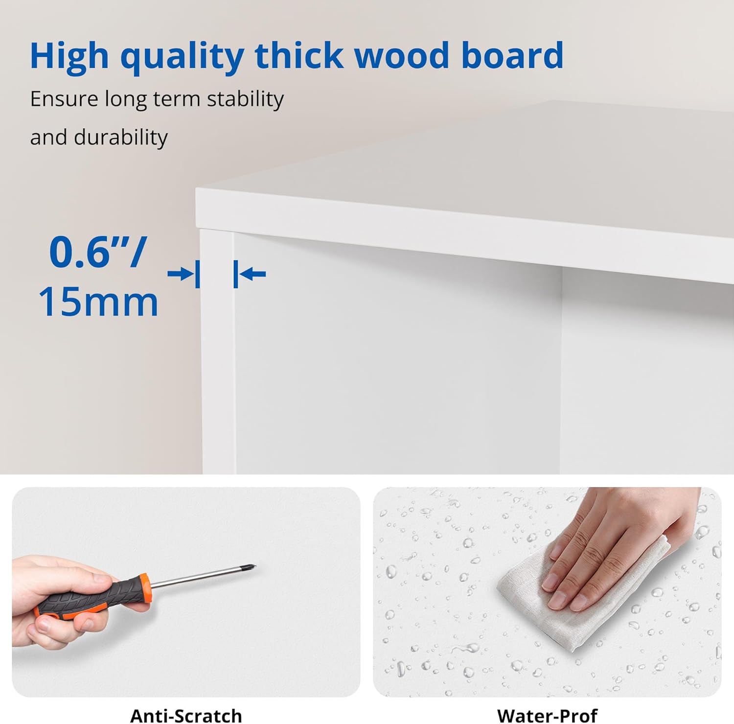 - Stable Construction: Equipped with an anti-tipping design and high-quality wood panels, which makes the bookcase more stable and safe. Exquisite sealing process gives the storage organizer a waterproof surface and smooth texture while making it durable