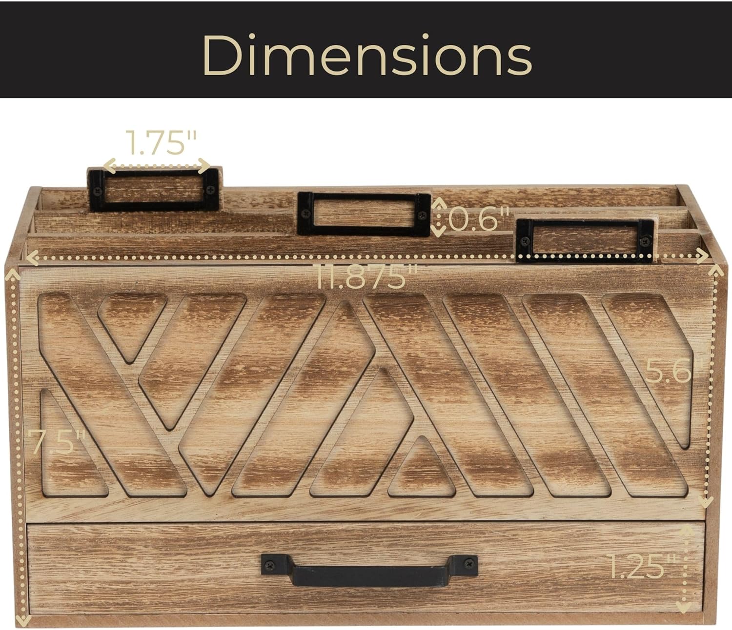 - This mail organizer for desk comes with a convenient drawer and black handle, providing additional storage space for your important documents and papers. The drawer is perfect for storing small items like pens, stamps, and paper clips, making it easier to keep your workspace organized.