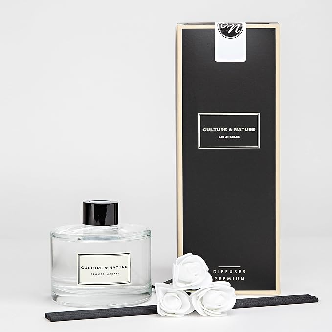 CULTURE & NATURE Reed Diffuser Set 6.7oz (200ml) Flower Market Scented Diffuser with Sticks Home Fragrance Reed Diffuser for Bathroom Shelf Decor