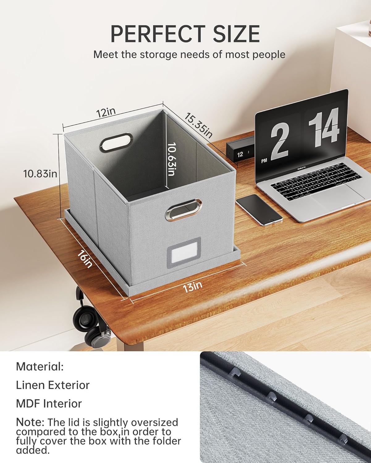 - Upgraded File Storage Box: Material and fabric upgrade and reinforcement, More durable, This file storage organizer is made of high quality MDF board, better support and bearing capacity. The lid can fit easily on the box after hanging folders.