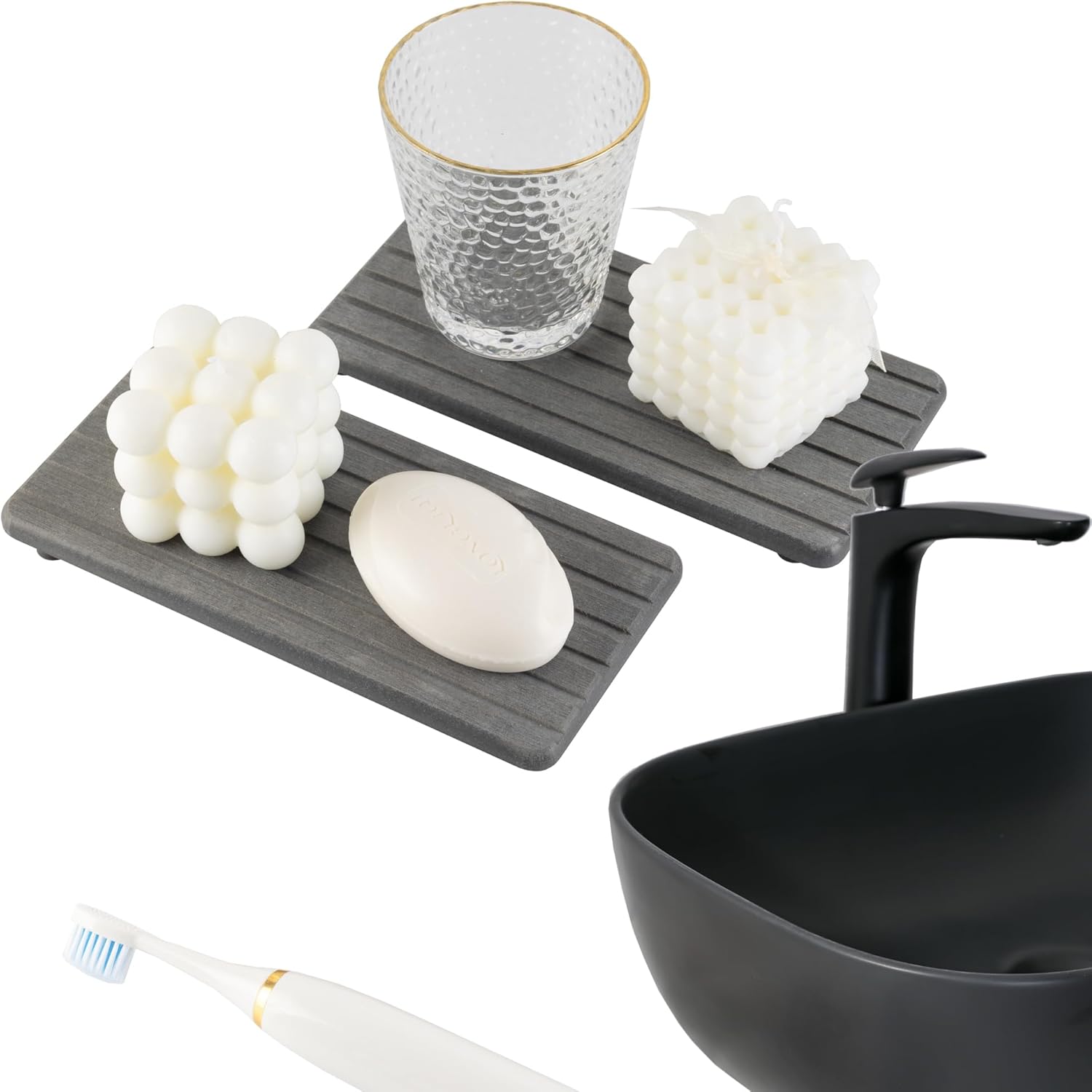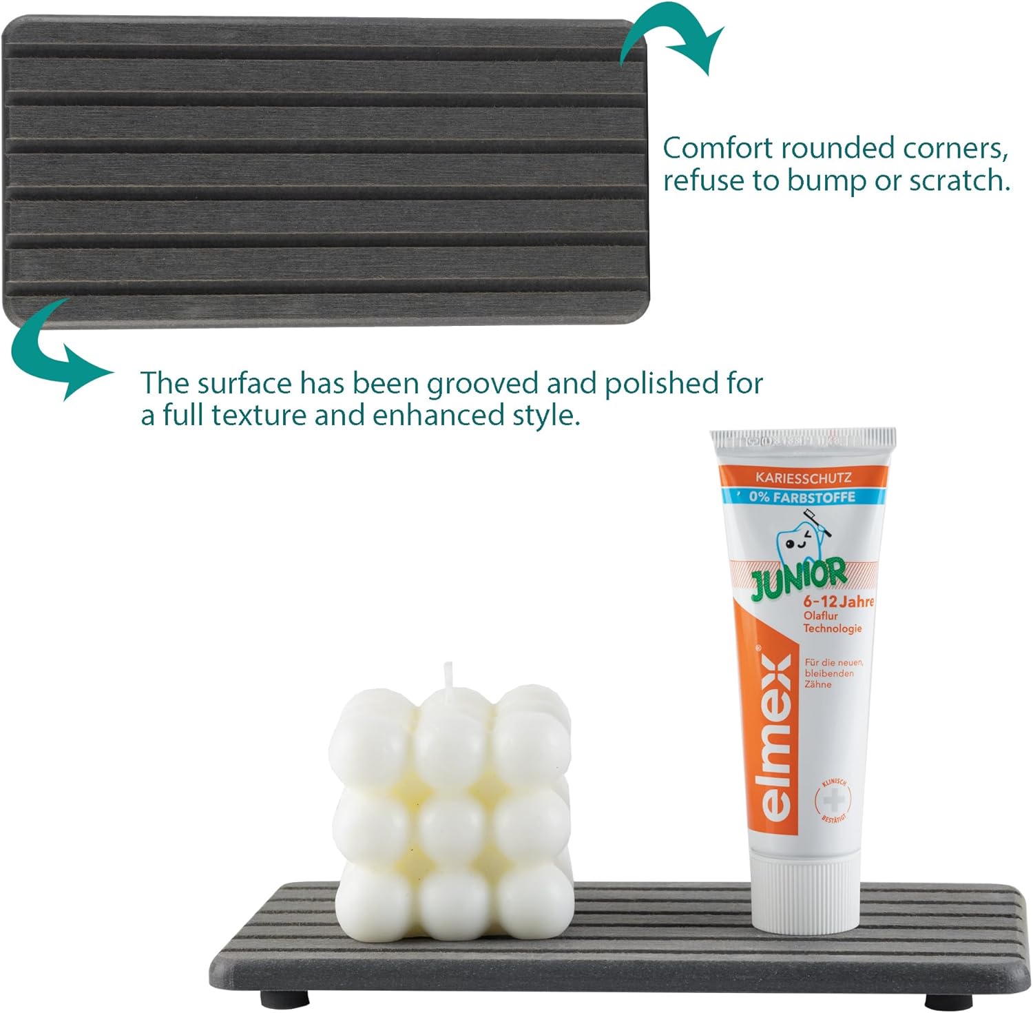 2 PCS Water Absorbent Diatomite Coasters Rectangle, Grooved Design, Water Absorbing Stone Used for Hand Soaps & Plants & toiletries in The Modern Home