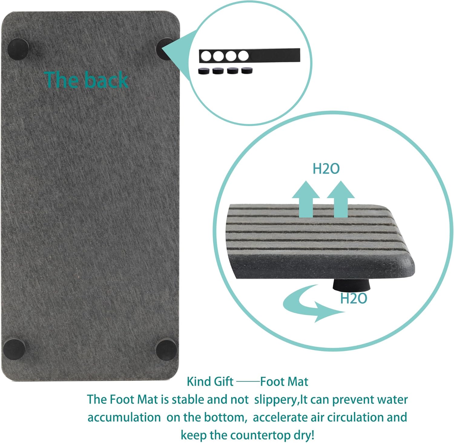 - Made from natural Diatom mud and plant fiber, small holes within diatomite enable it have amazing water absorption. They could absorb water and gets dry in a few minutes. It makes the Bathroom Counter top more dry and tidy.