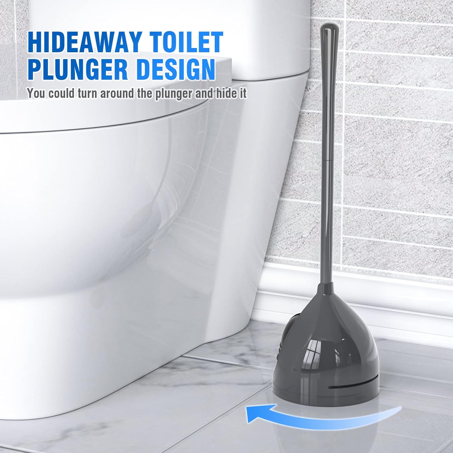 uptronic 2 Pack Toilet Plunger with Holder, Unique Plunger with All-Angle Design, Plungers for Bathroom for 5.7-inch Toilet Drain, Toilet Plunger Heavy Duty (Grey)