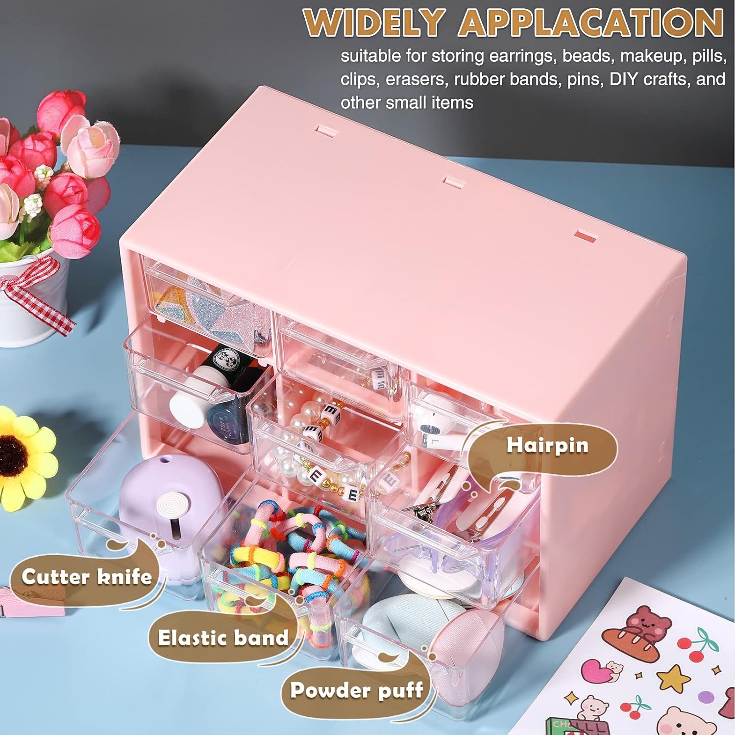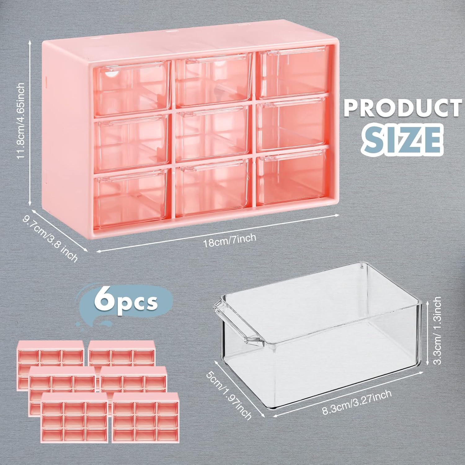 Amyhill 6 Pcs Mini Drawer Organizer Small Organizer with 9 Drawers Plastic Desktop Craft Storage Box for Office Home Room Jewelry Cosmetics Collection(Pink)
