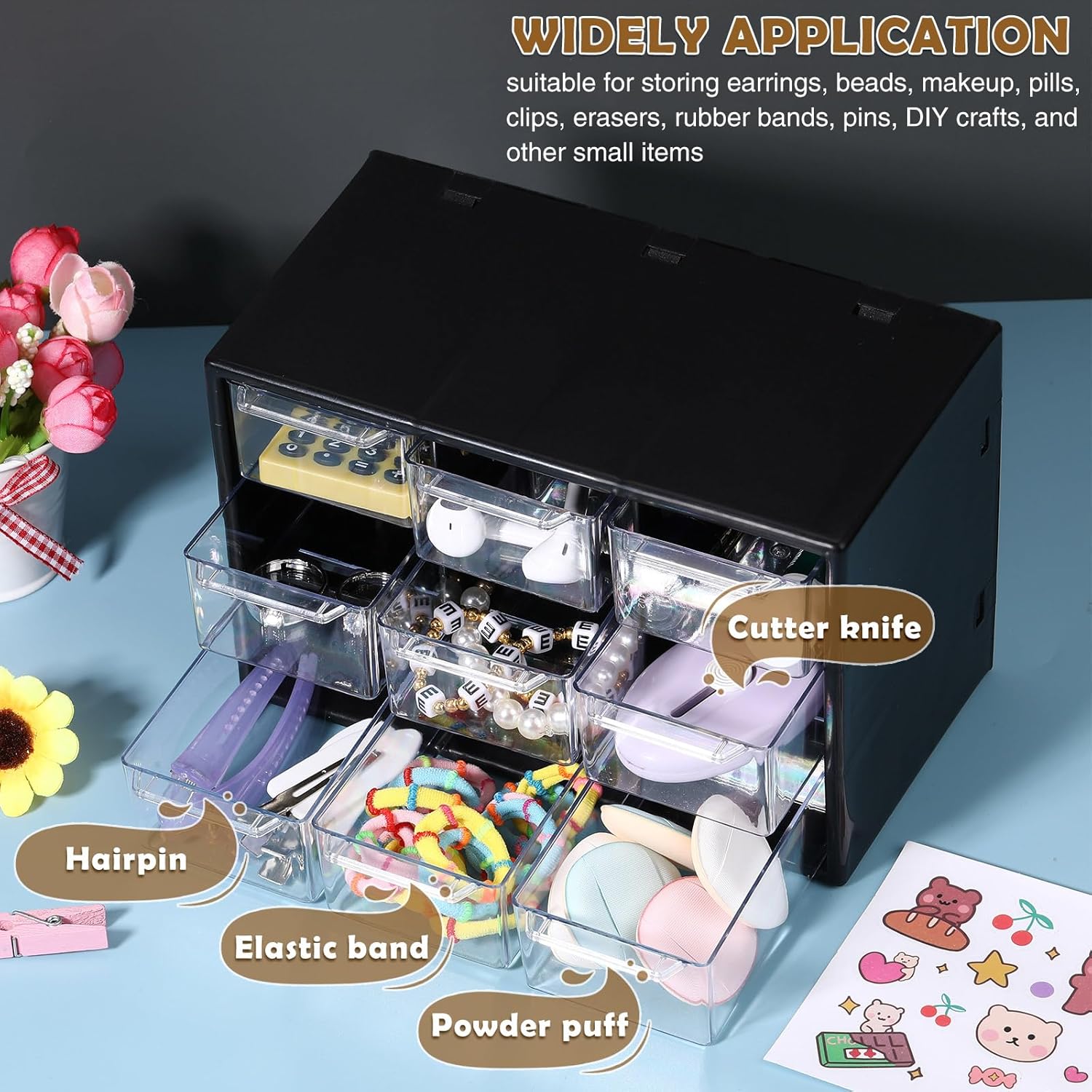 - Transparent Design: the mini drawer organizer is transparent to quickly identify stored items and reduce search time, while the modern design will look good in any home, office or craft room, suitable for storing earrings, beads, makeup, pills, clips, erasers, rubber bands, bracelets, pins, DIY crafts, and other small items