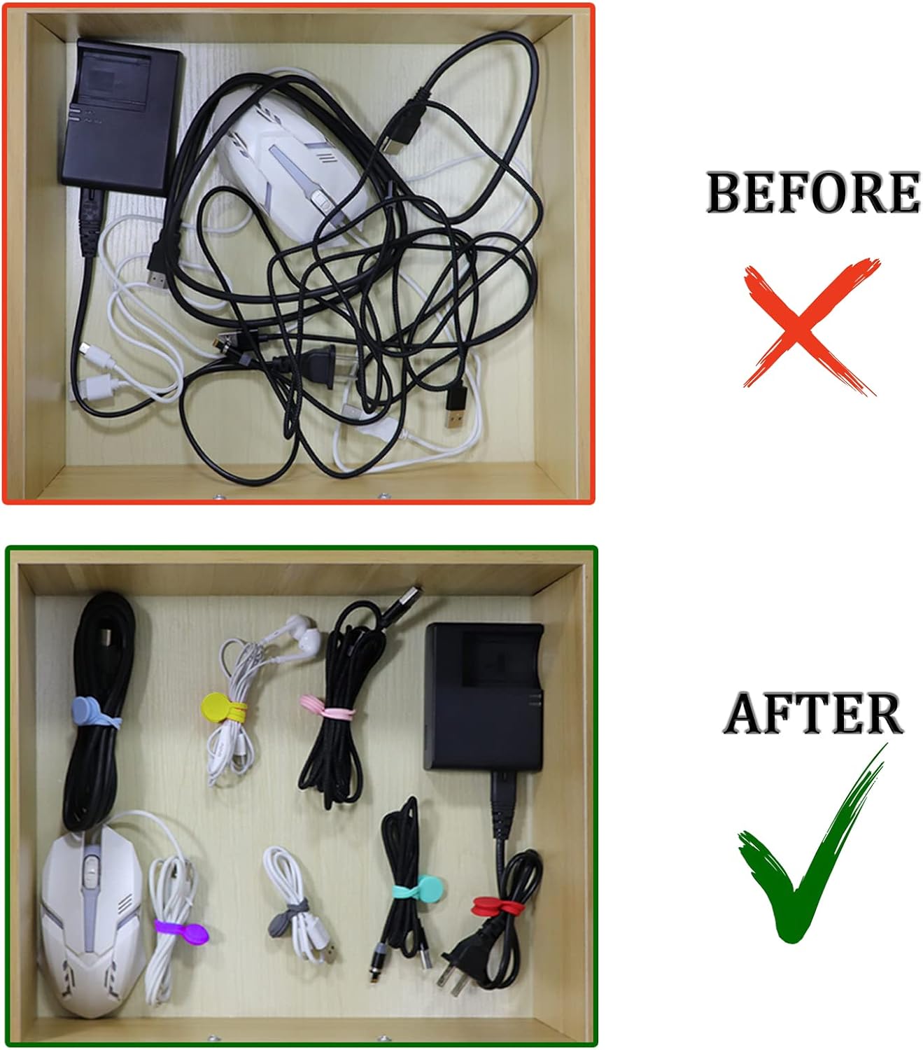 - 【Cable Ties Organize Your Life】Magnetic cable ties great for organizing cords on desk and laptop bag,keep cords on desk neat. They also help keep your cords and chargers in laptop bag from tangling. You can color coordinate them as well. Storing the cords in a drawer,helps to distinguish.