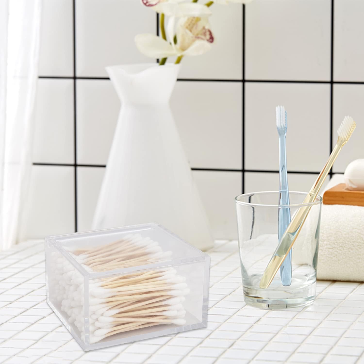 - Desk Organizer:Clear Acrylic box with lid is made of high quality plastic,the outer dimensions of box are 3.9*3.9*2.36inch.these storage boxes are perfect organizer for small objects,easy to store and take out,such as Q-tip,cotton ball,cotton swab,hair ties,sticky note,earrings,necklace,candy and more small things.