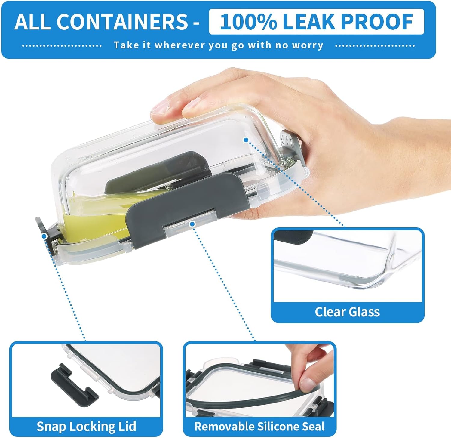 - [Leak-proof, Multipurpose Containers] 100% leak-proof and airtight seal, making these containers perfect for taking meals on the go; great for taking lunch to work and ideal for meal prep at home and perfect for the gym, pool, or work.