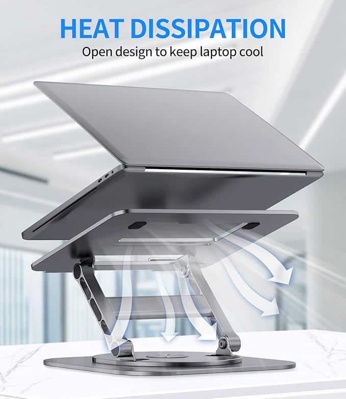 Adjustable Laptop Stand with 360 Rotating Base, Stable Computer Stand for Laptop Ergonimic Foldable Laptop Riser for Desk Compatible with MacBook Pro/Air Notebook up to 16 Inches, Grey
