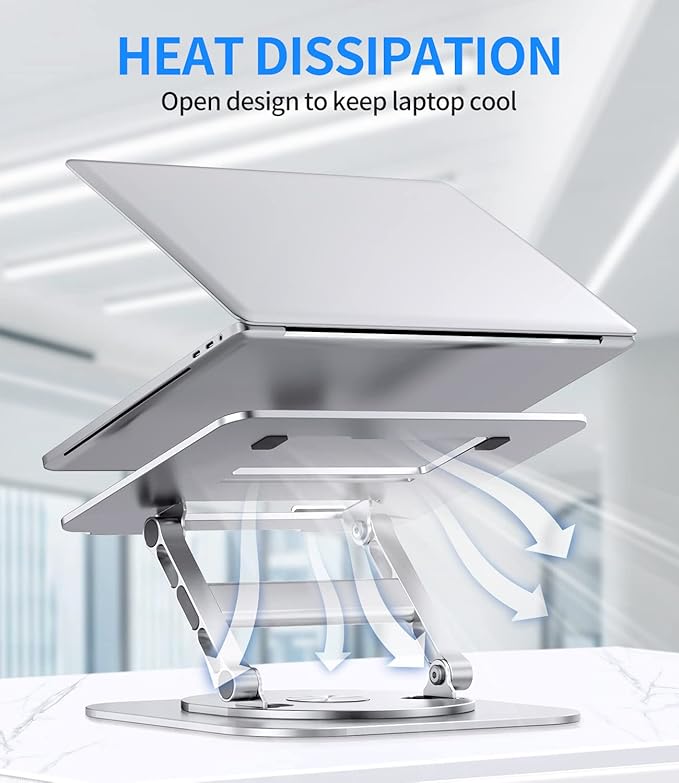 Adjustable Laptop Stand with 360 Rotating Base, Stable Computer Stand for Laptop Ergonimic Foldable Laptop Riser for Desk Compatible with MacBook Pro/Air Notebook up to 16 Inches, Silver