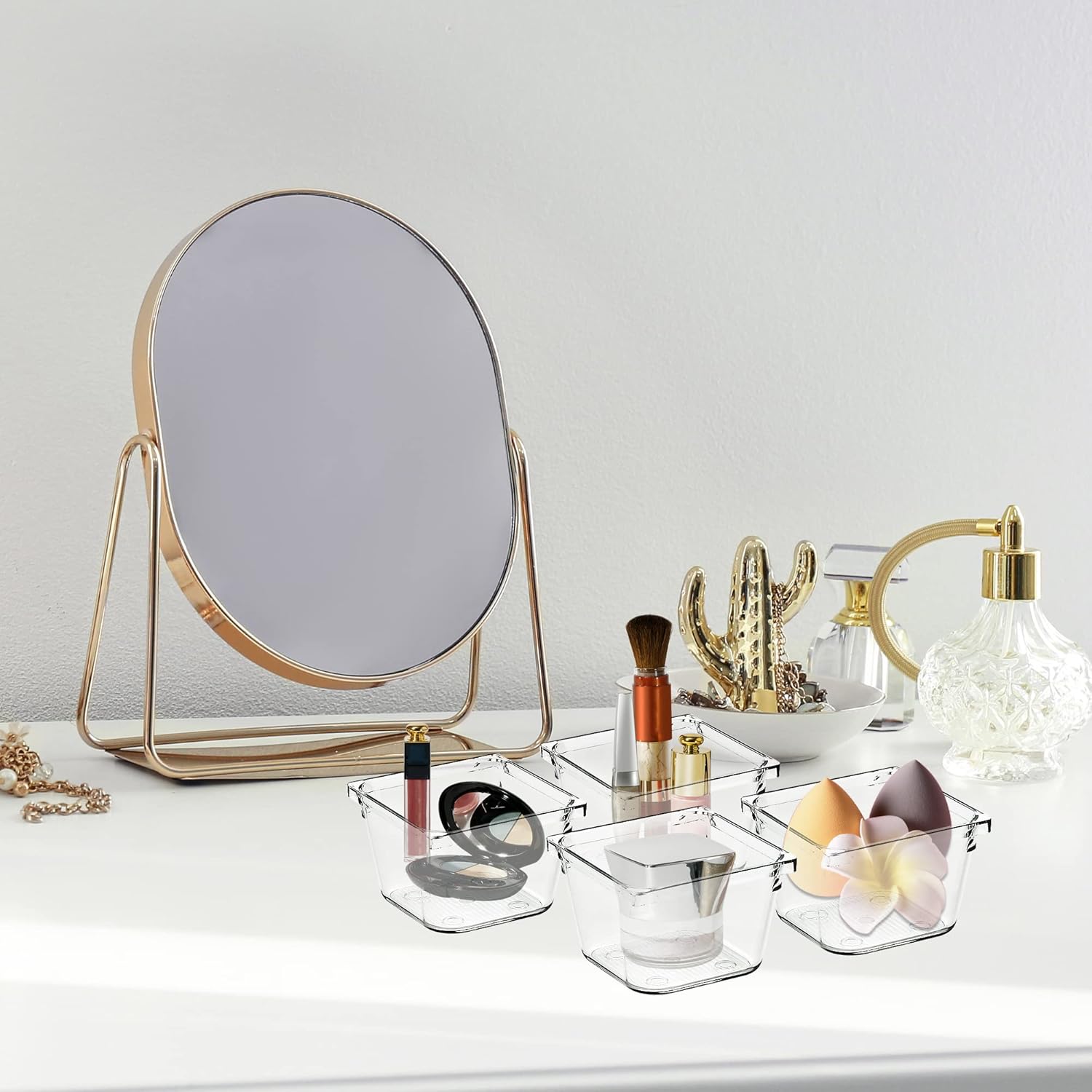 Ravinte 6 Pack Drawer Organizer - 3" X 3" Plastic Storage Bins, Acrylic Organizers with Non-Slip Pads Clear Desk Storage Tray for Makeup, Jewelries, Kitchen Utensils, Bathroom and Office