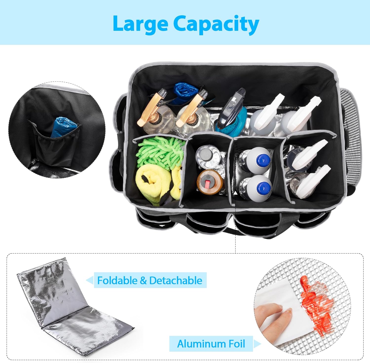- Broad to Use: The size of the cleaning bag is 19 x 10.5 x 10.8 inches, which is great, large capacity and multifunctional; suitable for storing cleaning products, car care supplies, repair tools or stuff of the trunk