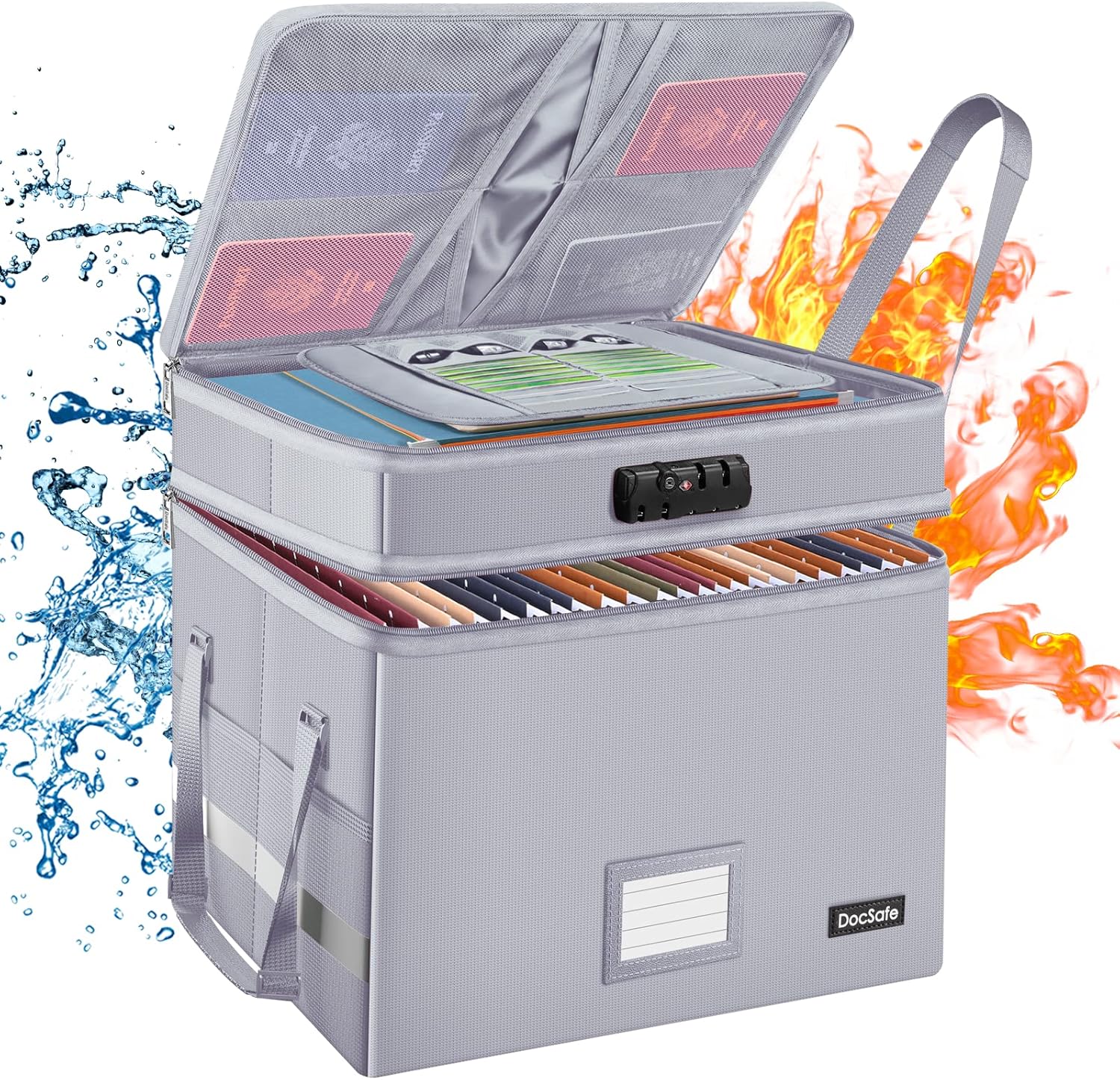 - Fireproof and Water-resistant: The multi-Layer rolling fireproof file box is made of 3 layered non-itchy silicone coated fiberglass which stands up the temperature up to 2200℉.It has been passed by SGS TEST(UL94 VTM-0 Certified).The file lock box is fireproof and waterproof, which can effectively protect your important documents in a fire, flood, and wet weather. They will further keep your files intact. Nothing is completely foolproof, but added protection is always a good idea.