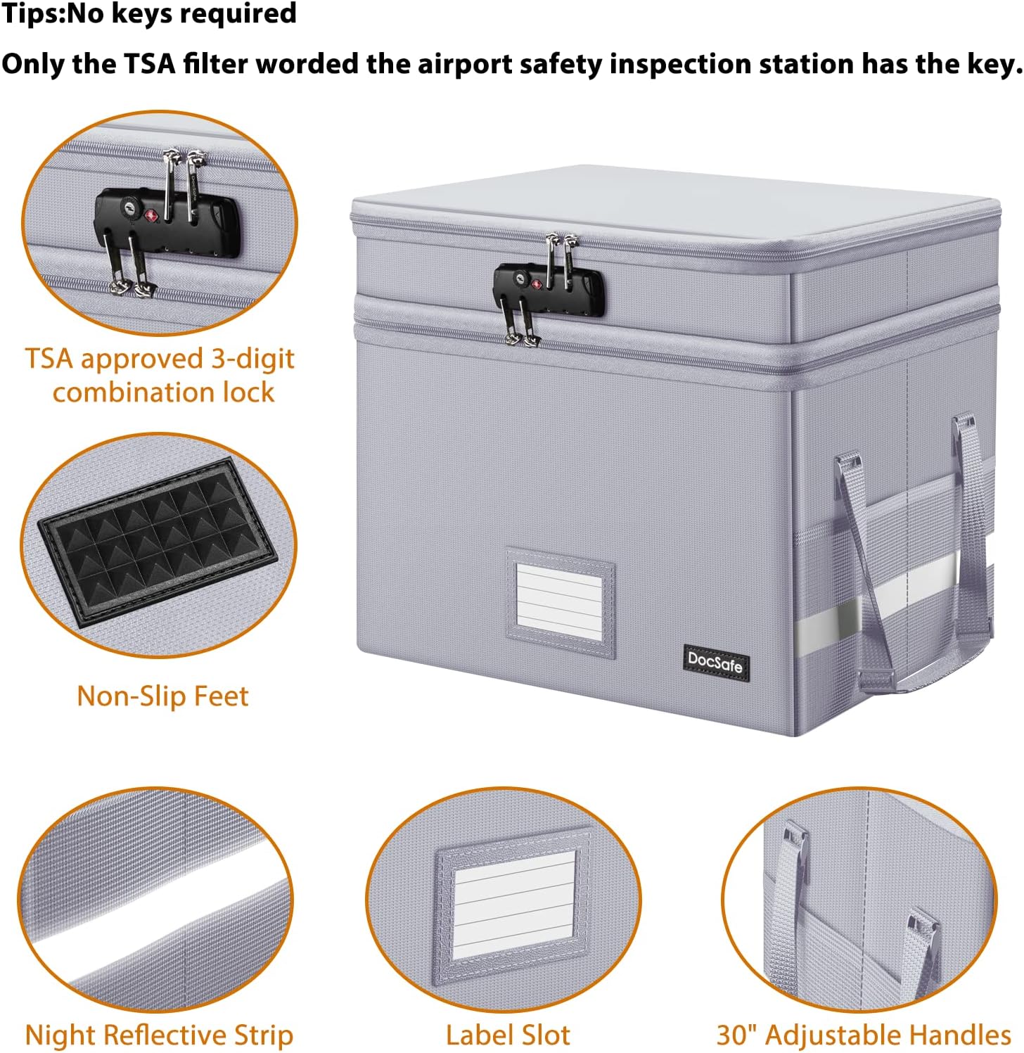 DocSafe File Box with Lock,Multi-Layer Fireproof Document Box Collapsible File Storage Organizer with Pocket,Large Portable Home Office Filing Cabinet Safe for Hanging Letter/Legal Size Folder,Silver