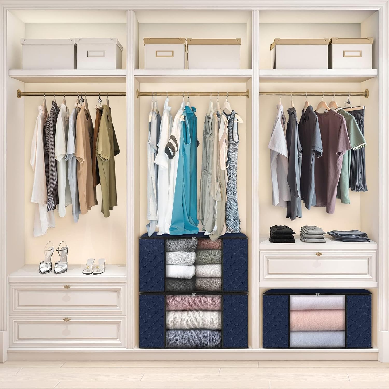 Fab totes Storage Bags,Clothes Blanket Storage Bins Foldable Closet Organizers with Reinforced Handle for Home Dorm Storage and Organization,Fabric Bags for Organizing Sheets,Clothing (Blue,3 Pack)