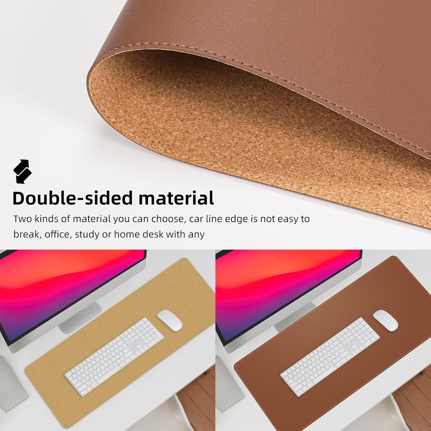 Leather Desk pad Protector, Large Desk mat with Natural Cork & PU Leather,Mouse pad,Non-Slip Office Desk Mat,Waterproof Desk Writing Pad for Office and Home (47in*17in, Brown)