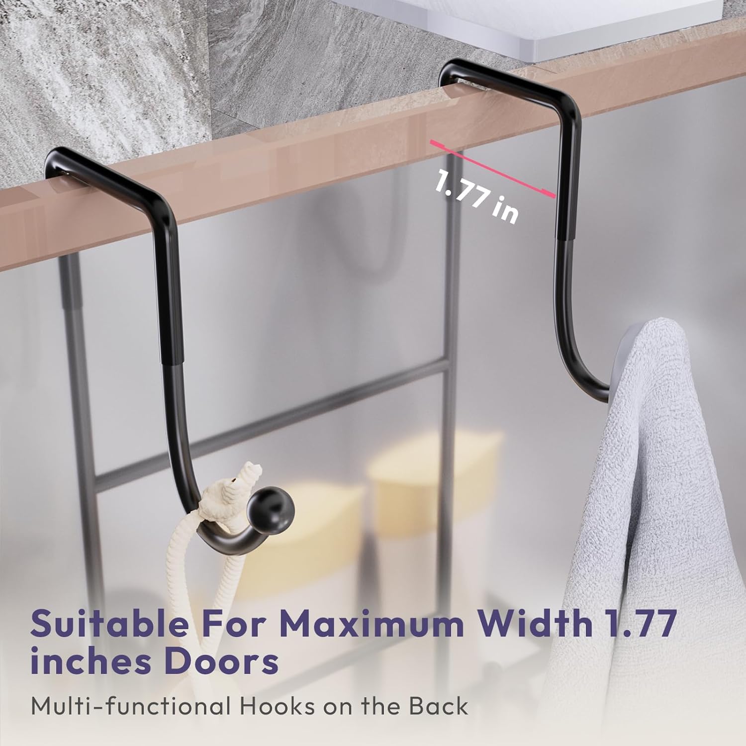 - [Dual Anti-Slip Design for Secure Fit]: This shower racks for inside shower features black anti-slip silicone on the top door hooks to protect and stabilize the rack, plus it comes with two adhesive pads for extra hold—just attach and go. Fits doors up to 1.77 inches thick without tools, delivering a safe, no-wobble experience in busy homes