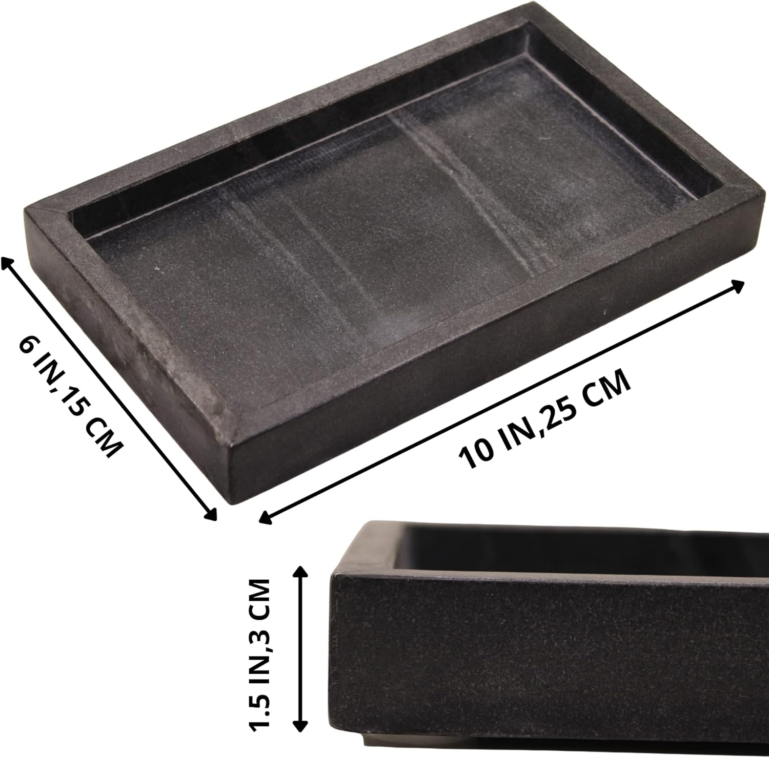 Natural Black Marble Tray for Bathroom | Kitchen | Vanity | Desktop, Stone Organizer for Coffee Table, Dresser, Nightstand, Candles, Soap, Towel, Plant, Jewelry (10" x 6"), Rectangular